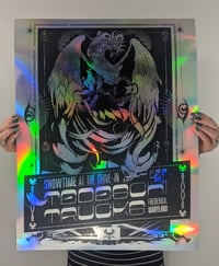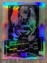 One color on rainbow foil stock poster stock. LIMITED number available, numbered and signed APs.
